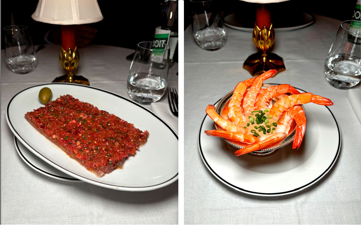 Selon la saison la carte annonce les succulentes crevettes cocktail que l'on peut commander sans avocat, la goujonette de sole et sauce tartare, le foie gras poêlé dans un consommé de boeuf et légumes de saison, les délicates fines tranches de thon Saku avec oignons rouges et huile d'olive, les haricots verts vinaigrette truffée, le choux fleur plus tahini et piment doux, le homard avec frisée plus mâche et truffe noire, le poulpe grillé avec maïs et chorizo, le suave saumon cuit à la braise sur des pousses d'épinards et sauce vierge, les magnifiques linguine et homard avec une bisque crémeuse, le bar entier au thym à partager, le filet de boeuf et homard, le burger de boeuf Wagyu plus cheddar fumé et pommes allumettes, la volaille fermière de Challans avec morilles et vin jaune à partager, les côtelettes d'agneau au jus corsé et carottes nouvelles,