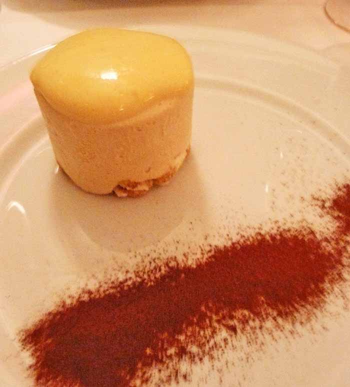 Lorsque le dessert arrive il faut choisir entre la vraie gaufre de Bruxelles et sa glace vanille, le Parfait glacé à la chicorée et sabayon à la blanche, la religieuse café ou pistache de Carl Marletti, l'œuf à la neige, ou la salade de fruits à la menthe avec son sorbet de citron jaune.
