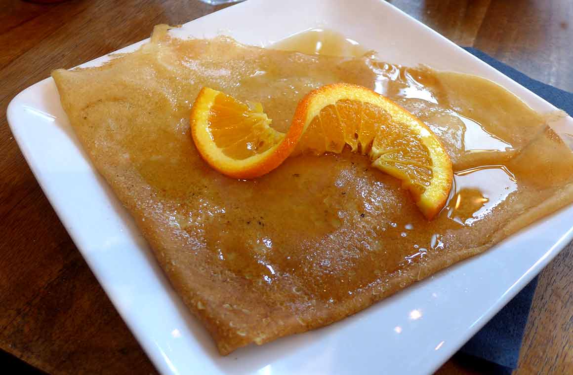 Et bien entendu les crêpes classiques au froment, de 3,90 à 11,50 euros : beurre sucre ; chocolat maison ; confitures de chez Nicolas Bernardé ; caramel au beurre salé, Orange ou citron ; crêpe Suzette sucre et Grand-Marnier flambé au jus d'orange ; Banane chantilly et chocolat ; ou ananas poêlé avec glace coco et coulis passion.