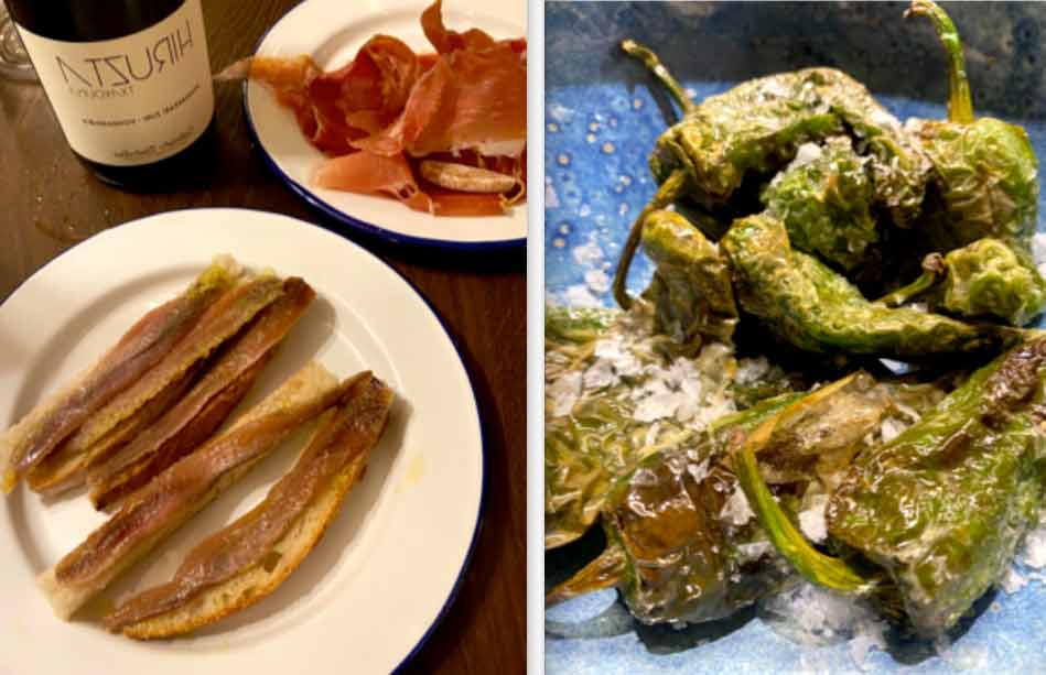 Ainsi, en ce mois de décembre, l’on peut débuter par de goûteuses « Cochonailles & Guindillas des Aldudes Pierre Oteiza » et « Tapas & Pinxtos » : « Assiette de Charcuteries », « Jambon de Kintoa, Jambon Serrano », « Saucisson & Chorizo », « Terrine au Piment d’Espelette », « Chichon (rillettes) de Pierre Oteiza », « Osso Iraty affiné et truffé », « Couteaux à l’ail », « Marinières de Coques », « Assortiments Croquetas », « Pimientos de Padron », « Part de tortilla nature, piperade, truffe », « Foie Gras Maison », « Anchois 00 de Cantabria ».