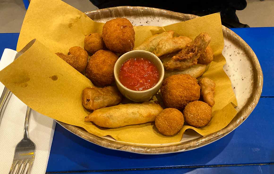 La sauce thon et câpres du « Vitello Tonnato » est quasiment absente et l’ajout inutile de mini tomates confites et de salade ne masquent pas l’indigence du plat. Le «Fritto Claudia », bien que généreux, n’a aucun goût, de même que la sauce tomate qui l’accompagne.