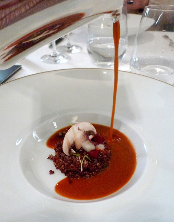 Selon la saison la carte du talentueux chef Jose Miguel Manuel, le chef de Goust, annonce l'oeuf cuit doucement avec dés de Bellota et soupe à l'oignon, les gambas et "suquet" quinoa avec champignons de Paris, le tout à fait remarquable riz de l'Albufera aux calamars et couteaux air de citron de la Huerta qui est plat magnifique, le bar de ligne rôti avec spaghetti de courgettes marinières de coques et sauce iodée, la selle d'agneau de Lozère rôtie et caviar d'aubergines fumées, ou le jarret de veau braisé avec purée de topinambours gnocco de Comté et jus de veau.