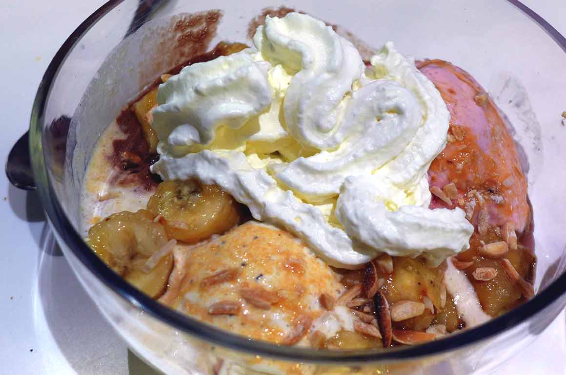 Giuse's Banana Split ; la salade fruits frais de saison ; ou l'