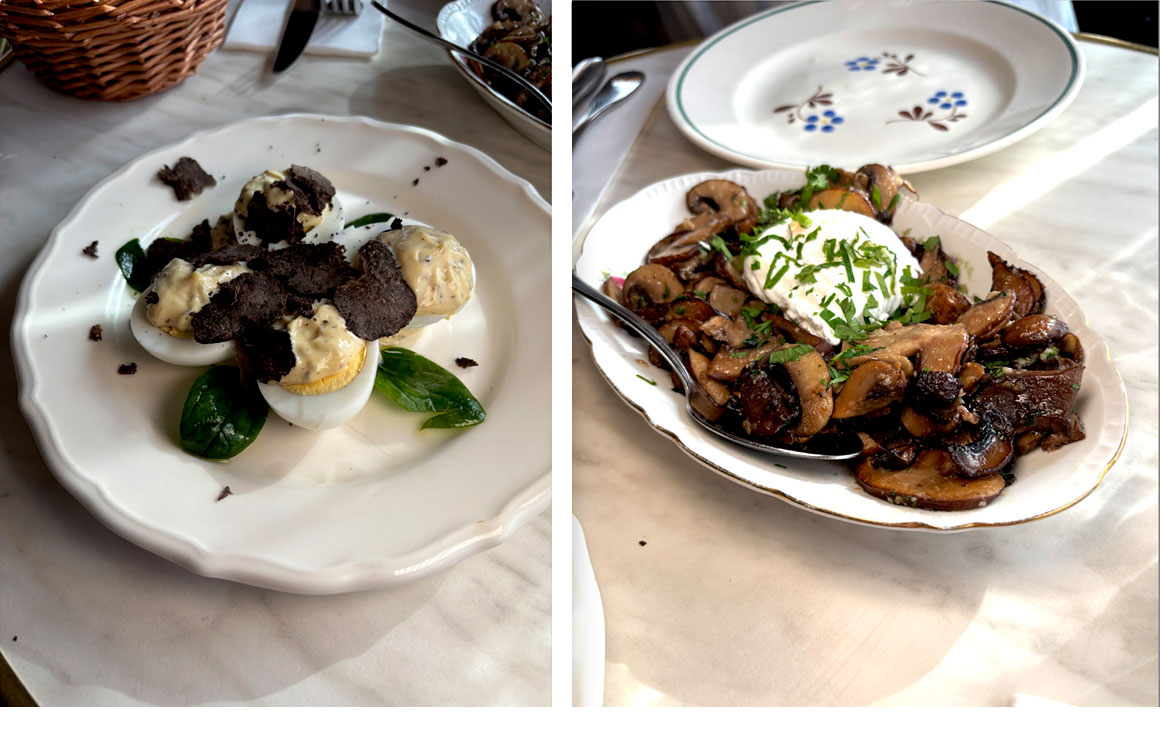 Dans une carte qui évolue avec les saisons et les propositions des fournisseurs, le chef annonce les oeufs mayonnaise à la truffe noire, les poireaux vinaigrette, l'os à moëlle croque au sel, le pâté en croûte du moment, la soupe à l'oignon présentée en croûte, la formidable poêlée de champignons aux herbes et oeuf poché, la pavé de saumon beurre blanc, le gratin de coquillettes à la truffe, le vol au vent financière, le suave poulet cocotte aux morilles et vin jaune, le cordon bleu au poulet fermier, le pot au feu de mamie Josette, le boeuf bourguignon et pommes anglaise, le tendre filet de boeuf flambé au poivre avec une onctueuse purée.