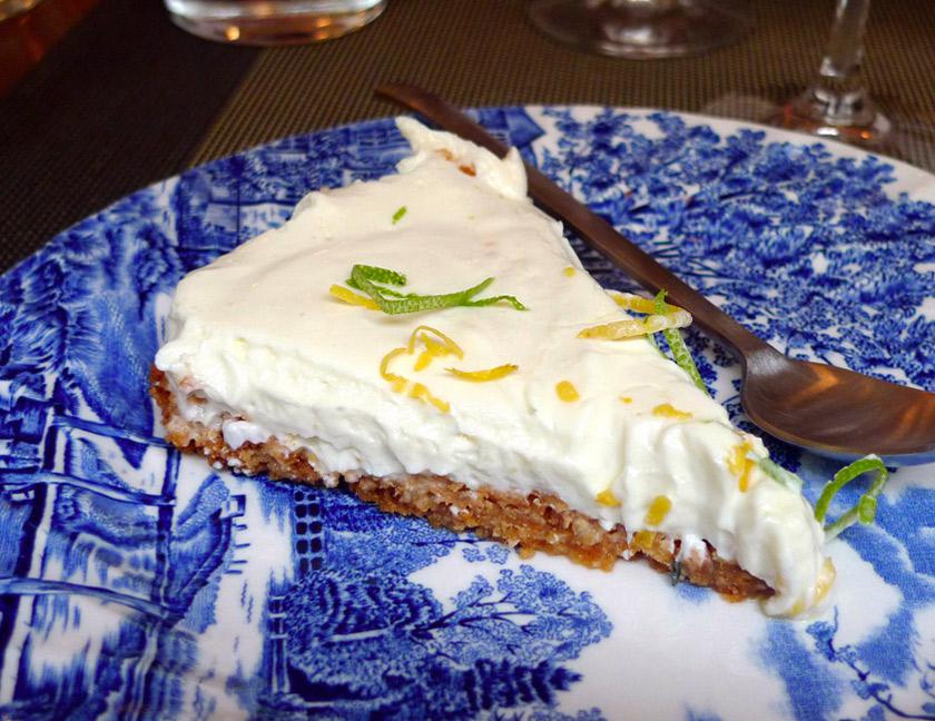 Photos : 1 : La salle du restaurant - 2 : Le velouté de petits pois à la menthe - 3 : Le bourguignon de joue de boeuf - 4 : Le cheesecake - 5 : Elégance et confort de la salle.