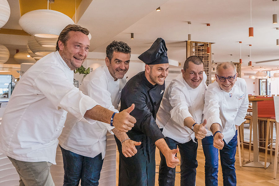 Des chefs qui étaient récemment en visite au Club Med Da Balaïa à Albufeieira au Portugal. « Nous sommes des professionnels qui connaissent les contraintes d’une entreprise, et qui cherchent en permanence à rendre cette dernière plus efficace » nous dit le president de l’association. Christophe Marguin, en ajoutant : « nous apportons au Club notre regard extérieur, un regard attentif et positif. Ainsi à Da Balaïa dès notre arrivée on s’est mis à l’ouvrage ( les chefs étaient là pour quatre jours), en étant présent du petit déjeuner jusqu’à la fin du service, et très vite remarquer ce qui faisait tousser la machine. Nous avons eu un échange franc avec le chef, qui est un bon, mais quand on a la tête dans le guidon et 42 chefs à gérer de 18 nationalités, on a beau être très pro on ne peux pas tout voir. (le Club Med recrute dans plus de 100 métiers dont 40 dans l’hôtellerie restauration) d’où notre rôle. Nous avons fait un debriefing constructif entre nous quatre, et acter avec le chef les quelques solutions pouvant être rapidement mises en place, et imaginer avec lui celles qui seront plus longues à mettre en route car nécessitant une remise a plat du matériel. L’essentiel de nos efforts va se porter sur les clubs alpins de Savoie et Haute Savoie tous assez proche de Lyon, et je vous assure que l’on va mettre le paquet, pour que la nourriture et le service soient à la hauteur du prestige de la cuisine française et des attentes d’une clientèle internationale. Travailler avec le plus grand club de vacances est un challenge formidable, on a envie de réussir et on va réussir » . Rendez vous cet hiver sur le terrain.
