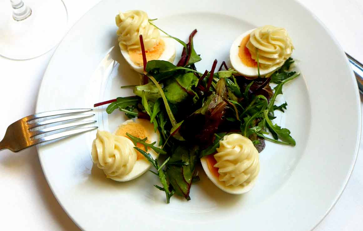 On peut ainsi se régaler, pour débuter, des classiques suivants: «Céleri rémoulade», «Œufs durs mayonnaise du Café du Commerce», «Museau de porc vinaigrette, oignons et persil», «Terrine de campagne maison», «Filets de hareng marinés, pommes de terre tièdes», «Traditionnelle soupe à l’oignon gratinée», «Os à moelle au sel de Guérande», «Cœur d’artichaut, champignons sautés, crème ciboulette»,…