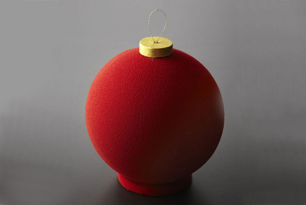 Cette boule de Noël XXL cache en son écrin de velours rouge un trésor gourmand aux notes vanillées.